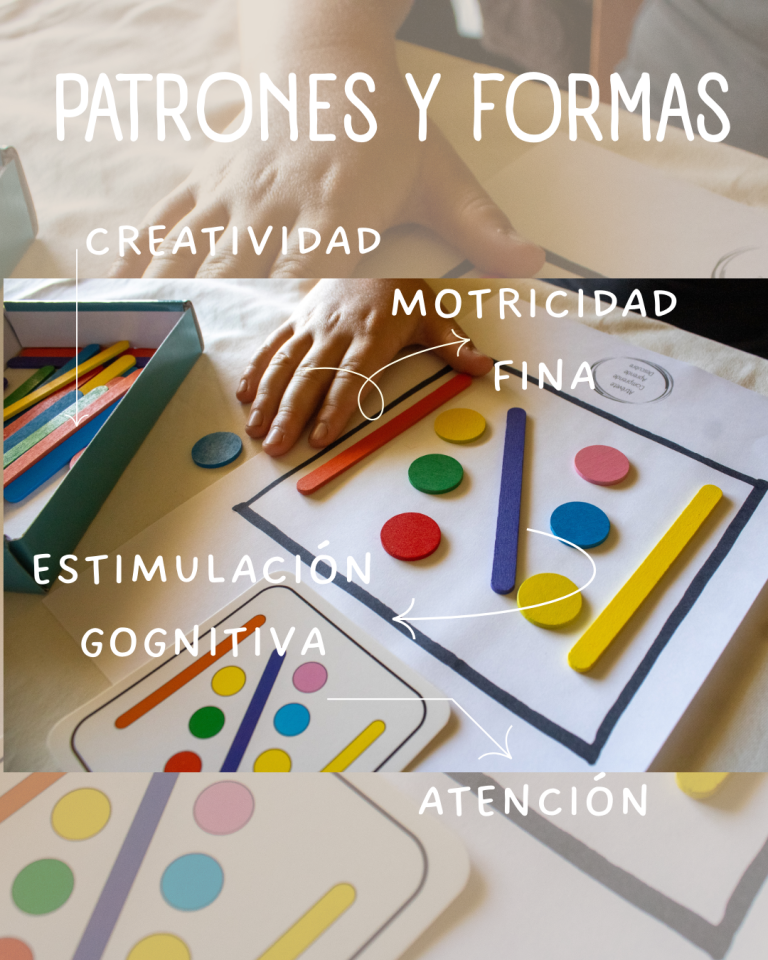 Desarrollo de la motricidad fina: Al manipular palitos y círculos para imitar patrones, los niños ejercitan la precisión de sus movimientos y exploran su creatividad.
